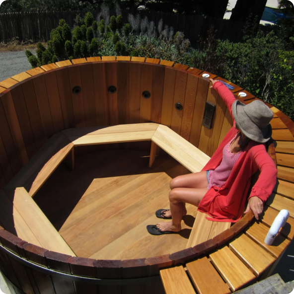 5’ tall cedar tubs that feature full body hydro massage jets with 3 heating options.