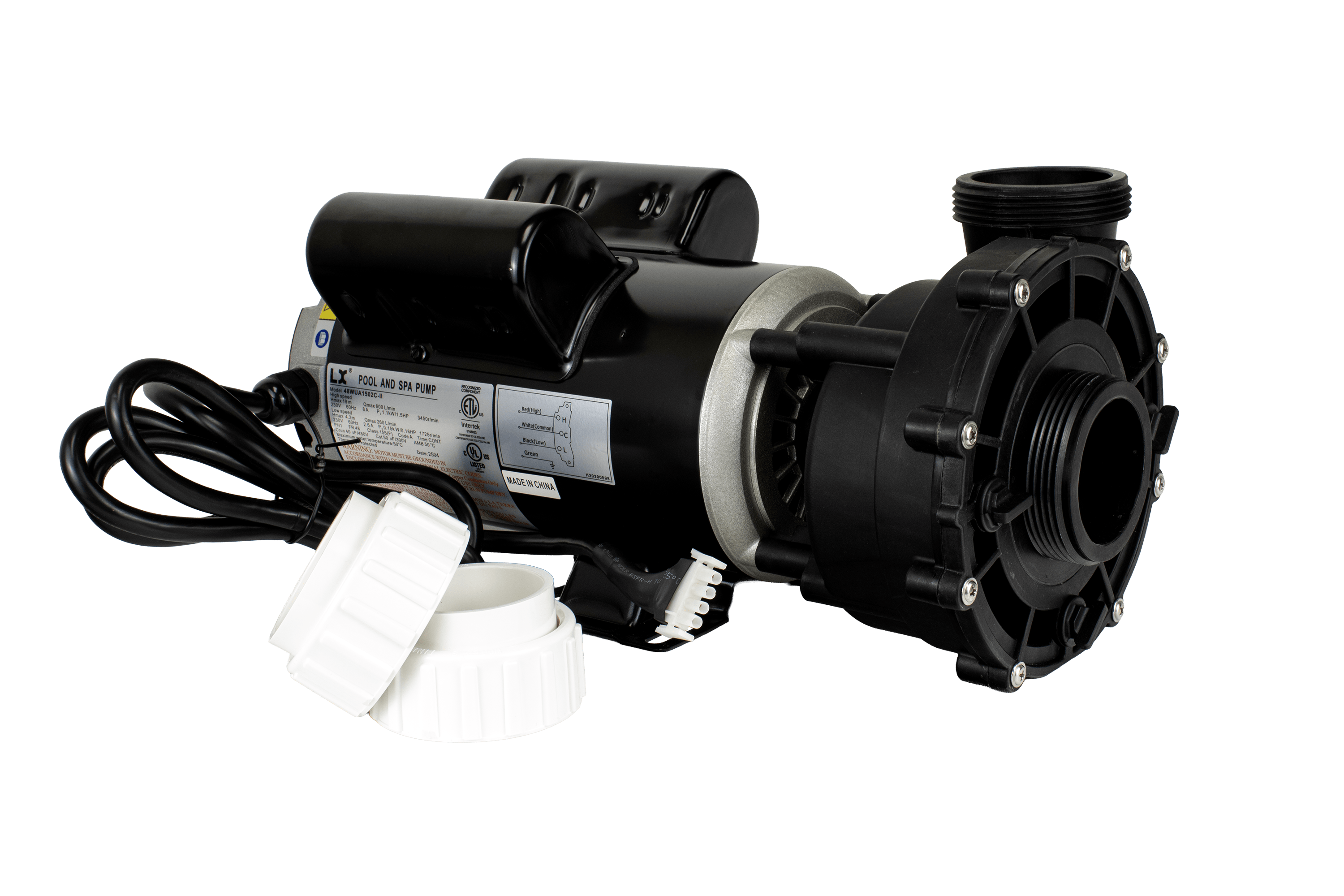 Replacement LX Spa Pump for 1.5 HP, 230V, 2-speed spa systems. UL Listed.
