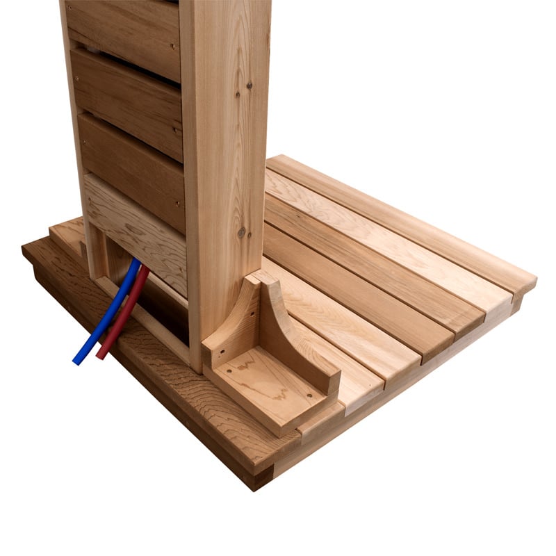 It is always recommended to rinse before going into a sauna or hot tub and is often a nice finish to any spa session. Complete your outdoor oasis with Northern Lights cedar shower and conveniently rinse without bringing the mess into your home. Install next to you sauna or hot tub so you're always ready for a spontaneous sweat or soak.